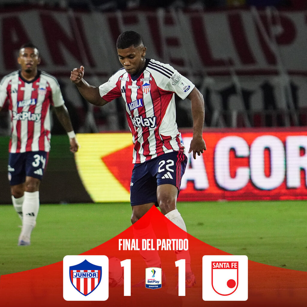 Junior y Santa Fe igualaron 1-1 en la ida de la final de la Superliga 2026 en el Estadio Metropolitano de Barranquilla con goles de Hugo Rodallega para el ‘León’ y de Teófilo Gutiérrez para el ‘Tiburón’.